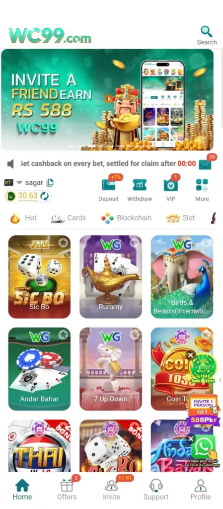 WC 99 provides daily bonus offers.