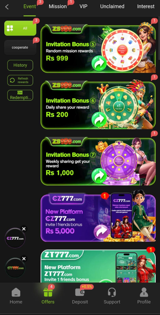 ZS999 bonus app provides daily login rewards that boost user earnings. Players receive extra coins or chances to win. Weekly events also offer special prizes. Because of frequent bonuses, users stay active and motivated.